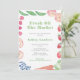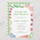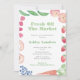 Este design de convite de Chá de casamento colorido e divertido apresenta a minha arte original (as imagens de fruta e legumes e também o cheque de gingham ao contrário). Eu defini a modelo para um Chá de panela "Ela está fora do mercado", mas todos os campos de texto são personalizáveis para suas necessidades. Você pode adicionar ou excluir campos de texto na ferramenta design. Abaixo da caixa de personalização do texto, clique para "personalizar mais".