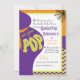 Cartões de anúncio de chá de fraldas/nascimento adoráveis, com uma imagem de barriga roxa com fundo de chevron preto e laranja, podem ser personalizados com seu próprio texto. Itens de coordenação também disponíveis nesta loja.