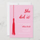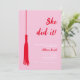 Celebrar um marco importante com nosso convite de festa de formatura de tendências e chic! Apresentando um design vermelho e rosa feminino, este convite ostenta um texto "Ela fez isso!" e uma fita-formando, fazer a forma perfeita de comemorar o trabalho e a dedicação do duro. Adicione um toque pessoal carregando uma foto do formando e personalize o texto para ajustado dos detalhes do evento. Seja um segundo grau, uma faculdade ou uma graduação na escola formando, este convite certamente impressionará. Peça o seu hoje e prepare-se para a festa!
