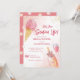 Ela foi esfregada em sorvete rosa e garrafa rosa de champanhe com modelo de convite para brunch de chá de panela de champanhe. Escrito casual moderno.