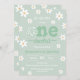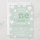 Um convite de aniversário de 1rua ano para uma garota bonita apresenta um sábio texto tipográfico ousado "um maravilhoso" no meio e rodeado por flores retro-groovy.
