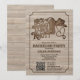 Ajude o noivo a comemorar seu último rodeio com estes convites bonitos. Possui um design de corte de madeira rusticado ocidental com uma bota de cowboy, chapéu e corda de lasso formando forma cardíaca, e uma letra vintage soletrando: Ele é Casando! O convite inclui um código QR personalizável para RSVP fácil.