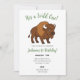 Estes convites de aniversário personalizáveis apresentam um retrato de um bison com a legenda "(s) ele é um selvagem!"