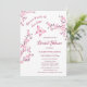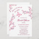 Este chá de panela apresenta o texto: "Porque ele faz o coração dela fluir" e uma borboleta rosa quente e cereja floresce em fundo branco. Chá de panela romântico em um roteiro caligráfico elegante. Na parte de trás está um código QR para o registro de presentes da pessoa de honra.
