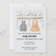 Este convite de apresentação de gênero neutro apresenta uma caligrafia negra moderna e uma linha de roupa de madeira boêmica com eucalipto verde pendurado. Você pode facilmente editar os detalhes e fazer alterações no estilo da fonte.
