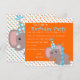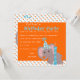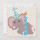 Um elefante giro, pronto para celebrar seu dia especial, completo com chapéu de festa e vela em um fundo e pontos. Precisa de um esquema de cor diferente? Escreva-nos e pergunte.