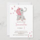 Adorável Elefante Rosa e Cinza em Aquarela, Bebê Amendoim com corações rosa giz. Você pode personalizar este convite doce com seu próprio texto e foto.