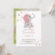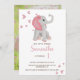 Convite Elefante Bebê Rosa Bege Água-forte Aniversário de