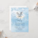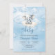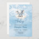 Suavemente design para os convites para o Baby Shower apresenta um elefante bebê bonitinho a balançar no céu azul com nuvens. A tipografia do Script Moderno diz "Oh Baby". Não hesite em contactar-me para obter itens ou personalizações correspondentes. Impressões violetas ©