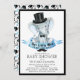 Pequeno bebê convida para um duche com um adorável elefante bebê apper com chapéu preto, arco gravata e bengala em um fundo preto e branco com um pequeno bigode de fundo nas costas. Esses pequenos convites para bebês são facilmente personalizados para seu evento simplesmente adicionando seus detalhes de evento. Você também pode alterar a cor de fundo.