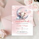 O tema "Nós te amamos até a lua e de volta" para um convite de chá de bebê de menina é absolutamente adorável. O elefante fofo sobre a lua adiciona um toque caprichoso que é perfeito para celebrar a chegada de um pequeno. O tema é doce e charmoso, criando uma atmosfera calorosa e amorosa para o evento. É uma escolha encantadora para transmitir o amor e a emoção que cercam a chegada iminente da bebê.