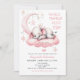 Twinkle Twinkle Little Star Girl Convite para Chá de fraldas com lua rosa e estrelas e um bebê elefante rosa giro dormindo em uma nuvem rosa.