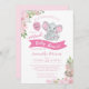 Convite Elefante Rosa e Chá Floral Virtual Baby Girl