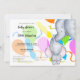 Um casal de elefantes adoráveis de aquarela, amando bebê e mamãe, entretém seus troncos contra um fundo de balões brilhantemente coloridos que criam um convite para chás de fraldas festivos para pequenos de ambos os sexos. As fontes de contraste foram usadas para informações que precisam apenas dos detalhes do evento YOUR que são facilmente trocados.