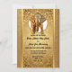 Um belo fundo de damascos de vintage ouro é enquadrado por bandas verticais douradas falsas e flores mais profundas de damascos dourados. Um elefante indiano arrojado e regal, com as orelhas abertas, repousa contra um círculo branco coberto de ouro. Modelos de texto preto para o seu texto personalizado aparecem abaixo dele. O dorso tem o mesmo design e um modelo adicional para mais informações aos convidados e familiares, que podem ser removidos se não for necessário. Os tons fortes e ousados dão a este design uma sensação luxuosa, elegante e real do mercado. Este convite é ideal para celebrar qualquer cerimônia hindu ou hindu ou qualquer celebração ou casamento étnico asiático.