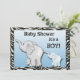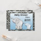 Um belo convite para o Chá de fraldas do bebê moderno e moderno. Com uma imagem impressa adorável de um elefante bebê segurando a cauda com sua mãe em um fundo azul com uma bonito borda de uma zebra branca e preta. O texto na frente deste convite é uma imagem impressa e não pode ser personalizado, mas os detalhes do evento no verso são totalmente personalizáveis para atender às suas necessidades. Se você quiser ajudar a personalizar seu produto, ou se quiser fazer a correspondência de produtos, entre em contato comigo na minha loja e eu ficarei muito feliz em ajudá-lo.