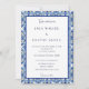Incorpore o seu casamento com elegância chic usando nosso convite de azulejo azul. Personalize este design clássico para uma celebração que irradia sofisticação e estilo.
