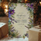 Traga um pouco de sofisticação para a estação com esta design de Natal de poinsettia roxa e azul. Enquadrada por verde-luxuoso, prigos de lavanda e flores rústicas, ela combina o encanto da vintagem com uma paleta de cores fresca e encantadora perfeita para um feriado elegante.