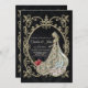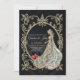 Elegância em ouro e preto. Composição cativante que combina elegância e mistério. O foco está em uma mulher com um vestido fluente, sua silhueta brilhando em ouro brilhante contra fundo preto profundo. O corvo simboliza mistério e inteligência e reforça a atmosfera mística da design. Nas proximidades floresce uma rosa vermelha, cuja cor vibrante representa paixão e beleza. Uma combinação de escuridão e luz, elegância e mistério