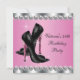 Sapatos de salto alto pretos e rosa elegantes com estampa de leopardo e diamantes, modelo de convite de aniversário feminino. Este lindo convite de aniversário de 40 anos preto e rosa é facilmente personalizado para o seu evento, bastando clicar no botão "Personalize!" para começar a adicionar os detalhes do seu evento, estilo de letra, tamanho e cor da letra e texto. Por favor, note que todos os adesivos, cartões e desenhos de convites que você encontrará na Zazzle são gráficos impressos sem joias, laços, relevos, rebaixos ou peças ou partes adicionadas.