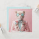 Um leopardo branco na moda que veste um terno rosa extravagante enfeitado com joias, detalhes florais e elegantes embelezamentos. Os óculos de sol e uma bolacha pastel, com colagem de diamante esportivo, exudem sofisticação e glamour.