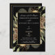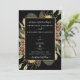Tanto limpo como decorativo, este convite de casamento apressado apresenta uma boa tosse de pinheiro com geleiras de pínus em um fundo preto elegante com trim de ouro