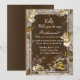 Fundo marrom rústico com rosas brancas e alianças de casamento douradas. Planejando um casamento? Você precisa de suas amigas para segurar sua mão, ajudar a organizar e fazer você parecer perfeita no seu dia especial. Pedir em casamento é fácil com este cartão de dama de honra. Personalize o cartão alterando o texto nos campos fornecidos na frente e no verso. Você pode alterar o estilo da fonte, tamanho e cor, bem como o tipo e estilo de papel.
