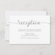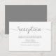 Esses cartões de recepção de casamento apresentam uma tipografia cinza moderna em um fundo branco, para um visual elegantemente simples.