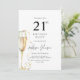 This is a modern and elegant 21st Birthday party invitation. Using a minimalist design of a flute of champagne, easily edit the text as required using the provided template and celebrate this milestone birthday in elegant style.
