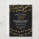 Convite Elegant 50th Birthday Party Gold Leaves on Black