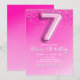 Convite Elegant 7th Birthday Girl with Pink Number Balloon