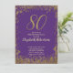 Convite Elegant 80th Purple Birthday Invitation Gold