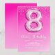 Convite Elegant 8th Birthday Pink Number Balloon