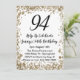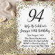 Convite Elegant 94th Birthday Invitation For Her in Gold