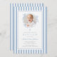 Elegant Baby Blue Bow Photo Boy Baptism Invitation. For best results upload a square image of the baby.