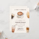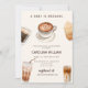 O convite de chá de bebê "O Bebê está Preparando Café" combina elegância e calor com um design temático de café. Com cores suaves e ilustrações de xícaras de café, define um tom aconchegante e convidativo. Ao redor do design, há vários tipos de café, como lattes e cappuccinos, que adicionam charme e alegria. É um convite elegante e moderno, perfeito para uma futura mamãe que ama café.