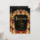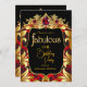 Convite Elegant Birthday Party Red Gold Black Damask Gems