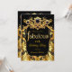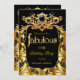 Convite Elegant Birthday Party Silk Gold Black Damask Gems
