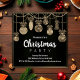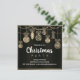 Set the tone for a glamorous celebration with our Elegant Black & Gold Christmas Party Invitation. This sophisticated design captures the magic of the festive season with a striking contrast of shimmering gold details against a deep black background. From the top of the card, delicate gold Christmas baubles, beads, and festive decorations cascade gracefully, creating an opulent sense of movement and sparkle.