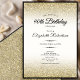 Convite Elegant Black and Gold Glitter 90th Birthday