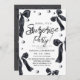 Modern stylish birthday party invitation black watercolor bow and modern script. Classy and elegant, simple and modern invitation.