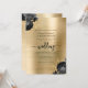Convite Elegant Black Floral Gold Brushed Metal Wedding