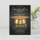 Convite Elegant Black & Gold 3D Cap Graduation Party