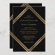 Convite Elegant Black Gold Geometric Wedding