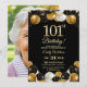 Convite Elegant Black Gold Glitter 101st Birthday Photo