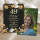 Convite Elegant Black Gold Glitter 49th Birthday Photo