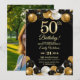 Convite Elegant Black Gold Glitter 50th Birthday Photo