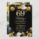 Convite Elegant Black Gold Glitter 69th Birthday Photo