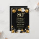 Convite Elegant Black Gold Glitter 80th Birthday