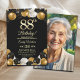 Convite Elegant Black Gold Glitter 88th Birthday Photo